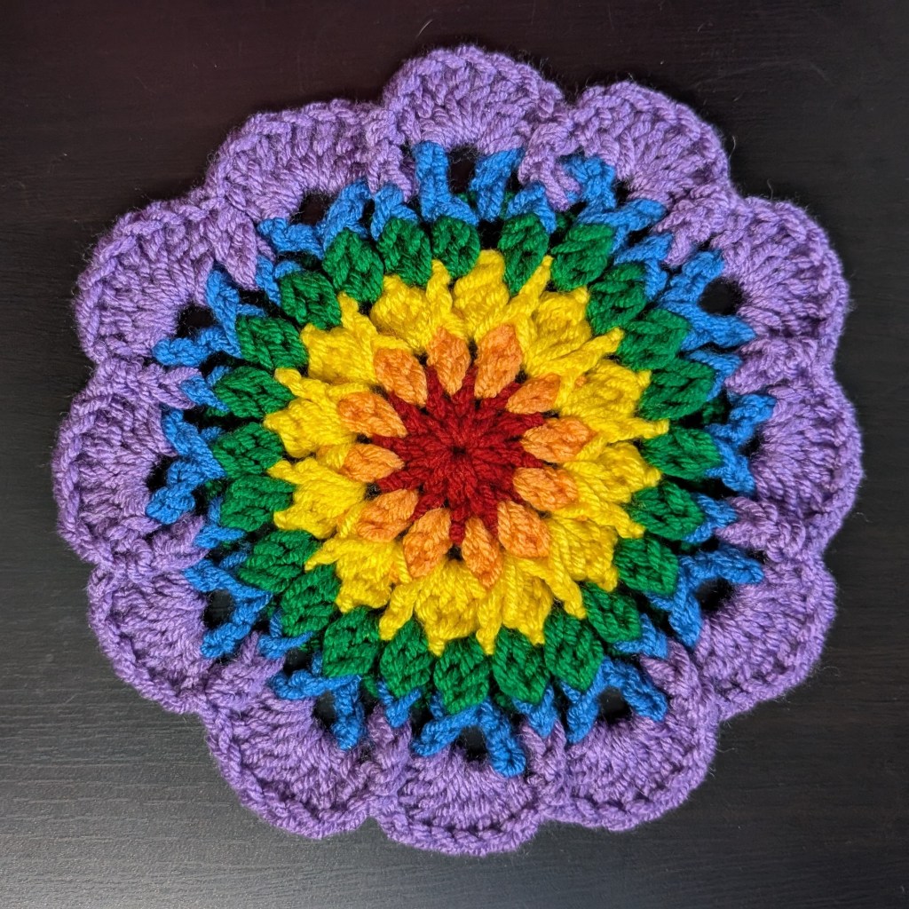 I completed two new projects during the stream: a mug cozy and a coaster, both designed with a Pride theme to celebrate the upcoming Pride Month. The coaster turned out a bit larger than expected (coaster or mini placemat? You decide!), but I love how the pattern came together. In fact, I’m already envisioning it as part of a future granny square project!